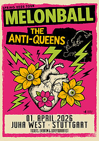Bereit für eine geballte Ladung Punkrock? MELONBALL aus Nürnberg bringen ihren energiegeladenen Melodic-Punk auf die Bühne – schnell, direkt und mitreißend wie ein Schlag ins Herz. Direkt aus Toronto kommen THE ANTI-QUEENS dazu – eine Band, die einst rein weiblich war, heute aber durch ihre vielseitige Besetzung (inklusive männlicher Bandmitglieder) eine noch größere musikalische Tiefe zeigt. Ihre scharfen Texte, kraftvollen Hooks und kompromisslose Live-Energie sind legendär.